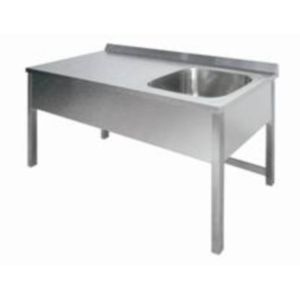 1400х700х850мм, Одна цельнотянутая емкость размером 600х500х300 из нержавеющей стали марки AISI 304 толщиной 1мм, ванна справа, обнижение 2мм, крыло плоское. Объемный пристенный борт высотой 70мм. Фартук с 3-х сторон высотой 285 мм. Каркас сварной из трубы 40х40 нержавеющей стали марки AISI 304 толщиной 1,2мм, с тыловой части установлены две перемычки для жесткости. Ванна комплектуется выпуском с нержавеющей решеткой и механическим запорным клапаном, диаметр выпуска 90мм, диаметр подключаемого сифона 50мм, перелив, регулируемые опоры. На дно ванны нанесена виброшумоизоляция. Ванна поставляется в собранном виде.