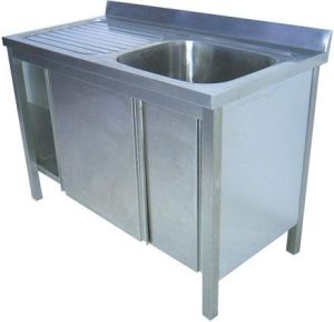 1400х800х850мм, Одна цельнотянутая емкость размером 600х600х330 из нержавеющей стали марки AISI 304 толщиной 1мм, ванна справа, обнижение 2мм, крыло плоское. Объемный пристенный борт высотой 70мм. Корпус сварной из нержавеющей стали марки AISI 304 толщиной 0,8мм. Двери-купе, полка. Ванна комплектуется выпуском с нержавеющей решеткой и механическим запорным клапаном, диаметр выпуска 90мм, диаметр подключаемого сифона 50мм, перелив, регулируемые опоры. На дно ванны нанесена виброшумоизоляция. Ванна поставляется в собранном виде.