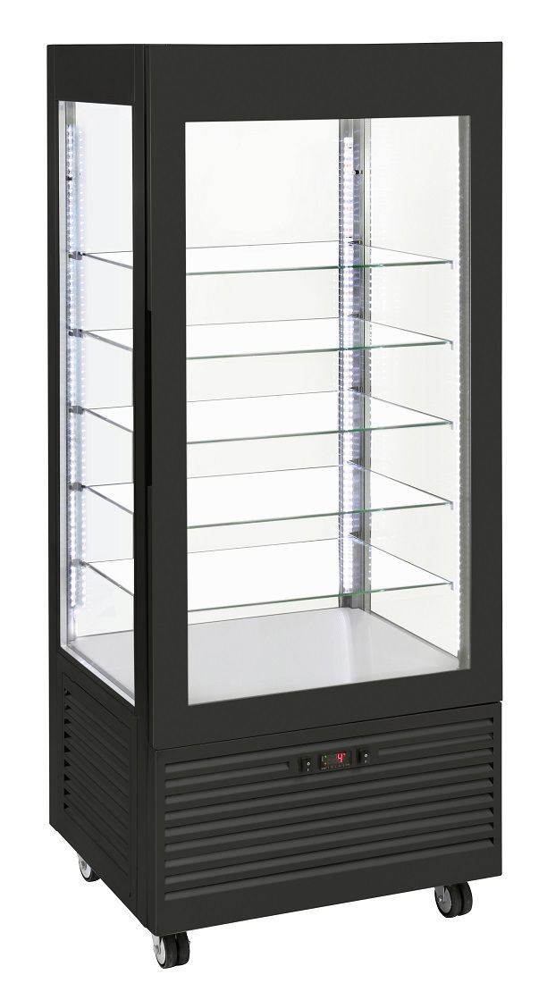 800х645х1850мм, 0,43кВт, +2/+10, 480л, остекл. С 4х стор.,подсветка, 5 фиксир. полок, 4 колеса